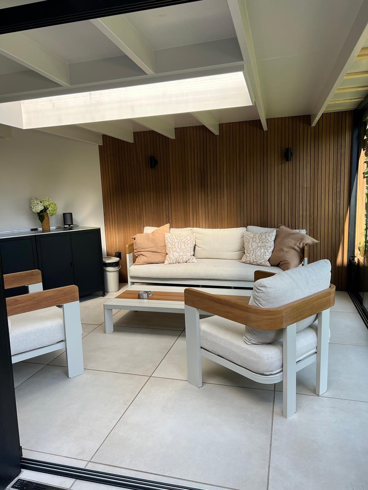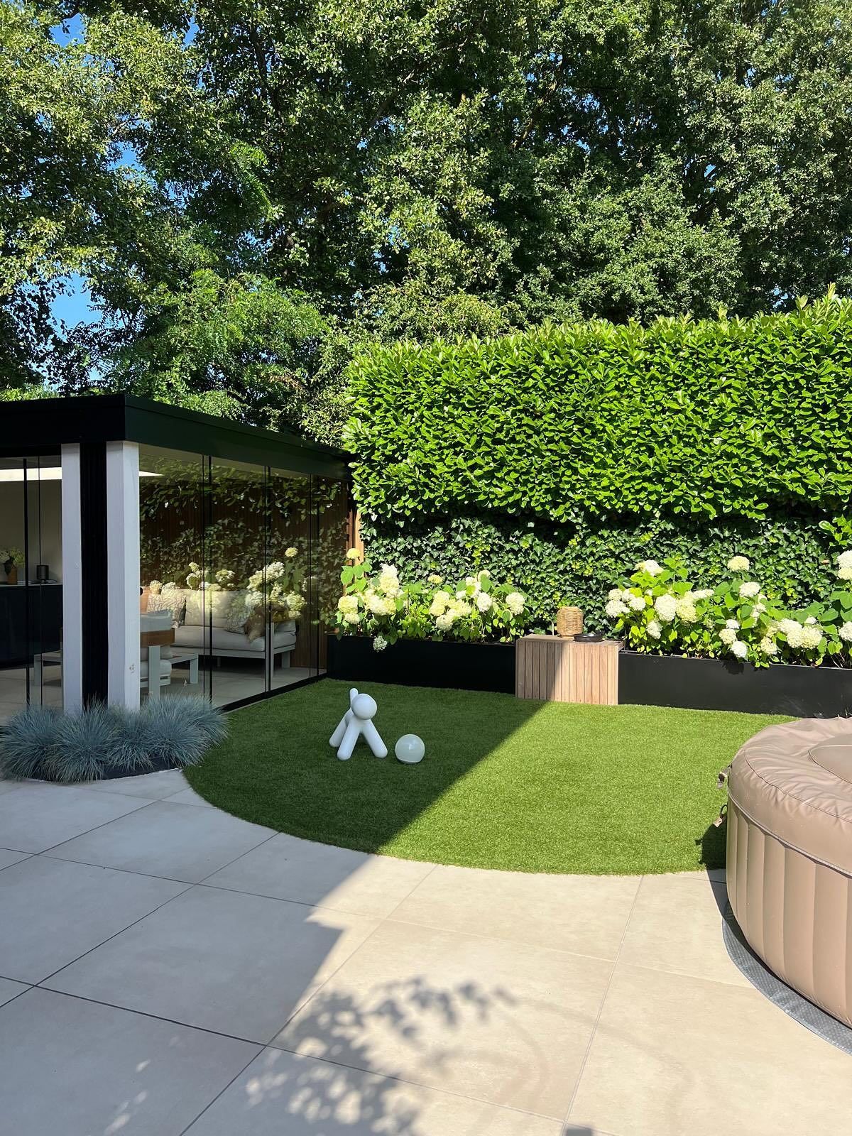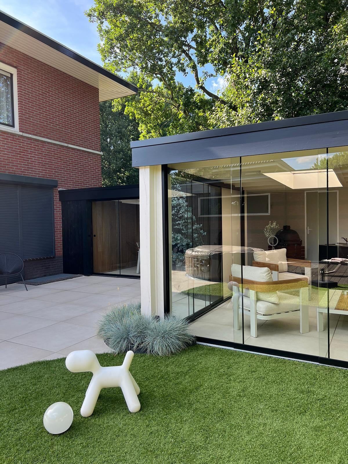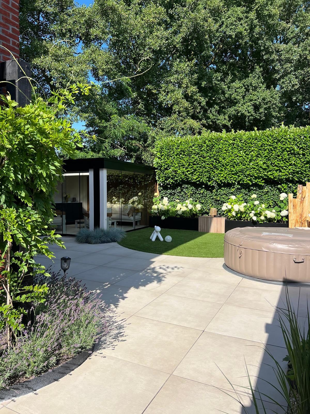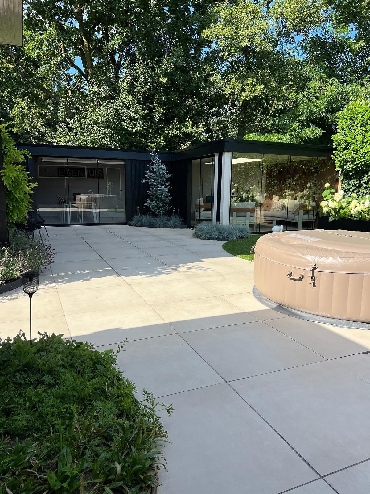 Een oase van rust in eigen tuin, afgewerkt met hoogwaardige materialen en oog voor detail.