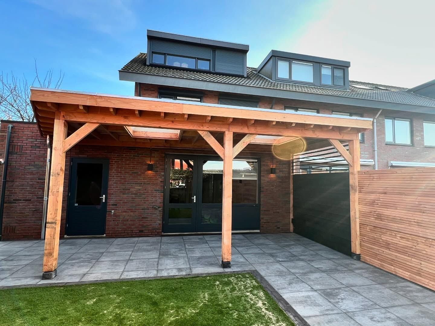 Een mooi winterproject afgerond! Ook in de koudere maanden werken we door aan mooie buitenruimtes. Recent hebben we een Douglas veranda geplaatst, waarbij we verschillende elementen hebben verwerkt: Straatwerk – een mooie en stevige basis voor de veranda. Verlichting & stopcontacten – voor sfeer en praktisch gemak. Lichtkoepels – zorgen voor extra daglicht en een ruimtelijk gevoel. Dankzij deze combinatie is het een fijne plek geworden om het hele jaar door van te genieten! Op zoek naar een mooie overkapping of veranda voor jouw tuin? We denken graag met je mee! #veranda #buitenleven #tuinaanleg #buitenverblijf