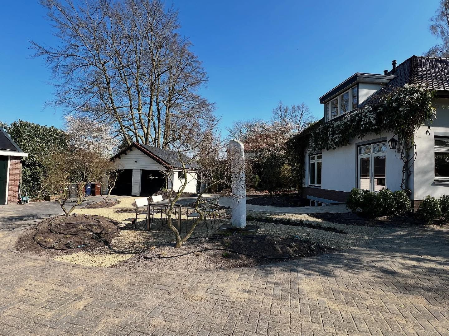 We zijn ontzettend trots op onze nieuwste tuinrenovatie in Soest. Een complete metamorfose waarin we een harmonieus geheel hebben gecreëerd van nieuwe en hergebruikte materialen. Hier is wat we hebben gedaan: • Keramische tegels aangelegd met hergebruikte klinkers eromheen • Klinkerpaden opnieuw gebruikt voor een authentieke uitstraling • Een sfeervolle pergola met Toscaanse jasmijn én een pergola met schommel • Een robuuste muur van wallblocks voor extra structuur • Onderhoudsvriendelijk kunstgras • Een prachtige Douglas schuur en Douglas poort met een Deens rabat schutting voor extra privacy Deze tuin combineert duurzaamheid met een strakke afwerking en biedt een prachtige plek om van te genieten! #tuinaanleg #duurzaamtuinieren #hergebruik #keramischetegels #klinkerpaden #kunstgras #pergola #DouglasSchuur #ToscaanseJasmijn #Soest #Hoveniersbedrijf