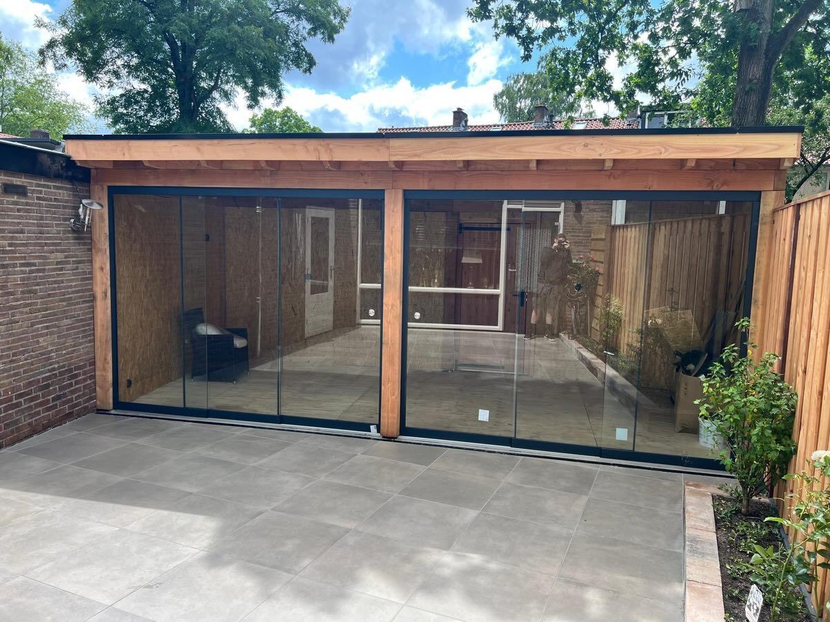Project afgerond: moderne overkapping met glazen schuifwanden Voor deze tuin hebben we een strakke houten overkapping gerealiseerd, compleet met glazen schuifwanden en een luxe afwerking. Zo ontstaat er een heerlijke plek waar binnen en buiten naadloos in elkaar overlopen – het hele jaar door genieten Van fundering tot afwerking: alles vakkundig aangelegd met oog voor detail. Wat vind jij van dit eindresultaat? Interesse in een overkapping of tuinproject? Stuur ons gerust een bericht! #overkapping #tuinproject #hoveniersbedrijf #tuininspiratie #buitenleven #maatwerk #modernetuin #tuinaanleg #glaswanden #houtbouw